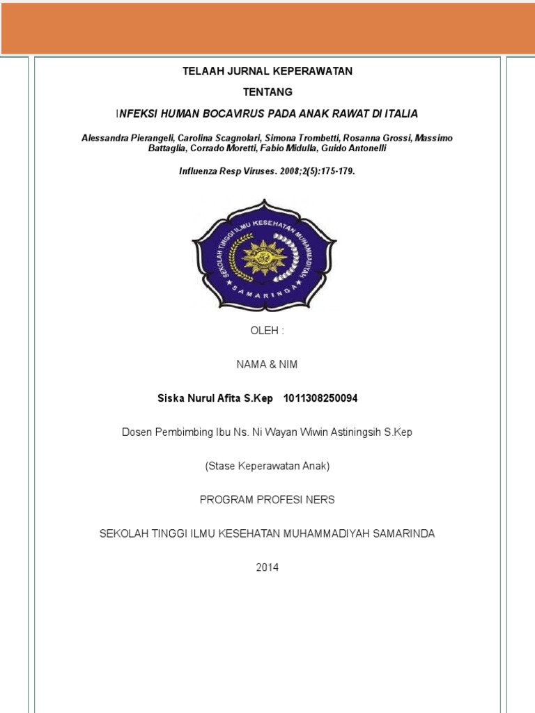 Kelompok 3 s1 keperawatan 2a sania maulida ( c1814201002) sintia hayatunnisa. Kelompok sampel terdiri dari 30 pasien rawat inap dari bulan maret sampai september 2005 di dua unit perawata… P 2722 4012 077 kelas : Mengkrtisi suatu jurnal yg di terbitkan seorang peneliti kesehatan. Reni nurhidayah 0810720057 jurusan ilmu keperawatan fakultas kedokteran universitas brawijaya malang 2012 a.