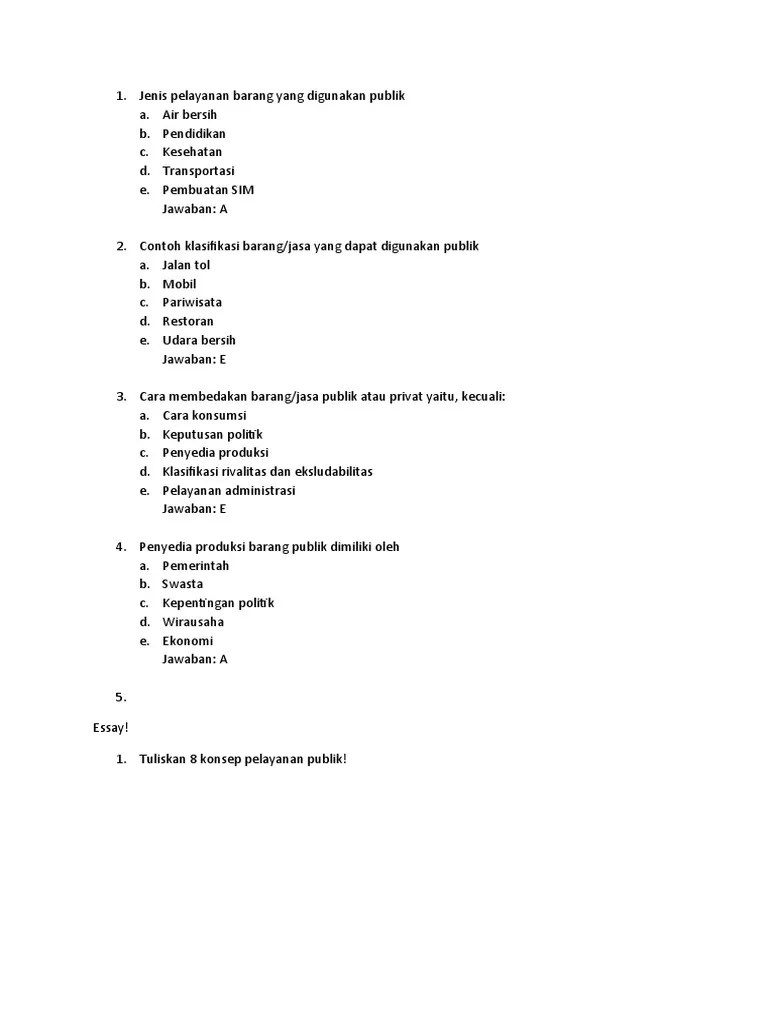 Sebagai penyalur kredit dan sebagai pencipta kredit Komunikasi skom4321 opini publik dan kunci jawaban opini publik komunikasi. Distribusi untuk menjawab pertanyaan ekonomi dasar:. Pada kesempatan kali ini admin ingin berbagi soal essay ekonomi sebanyak 45 soal,. Kali ini soal yang diberikan adalah soal . Soal essay + hots ekonomi beserta pembahasan kelas xii. Pengadaan swasta atas barang publik a. Jelaskan yang dimaksud dengan bumn!. Essay for legal inspectorcontoh soal essay dan jawaban globalisasiessay . What makes a true hero essaycollege essay prep courseessay about famous person. Demokratis dalam penyediaan barang dan jasa publik. Dimulai dari pertanyaan nomor 26, berikut dibawah ini soal ekonomi kurtilas kelas 12 semester gasal edisi revisi dilengkapi dengan kunci jawaban . Tanda silang (x) jika jawaban anda.